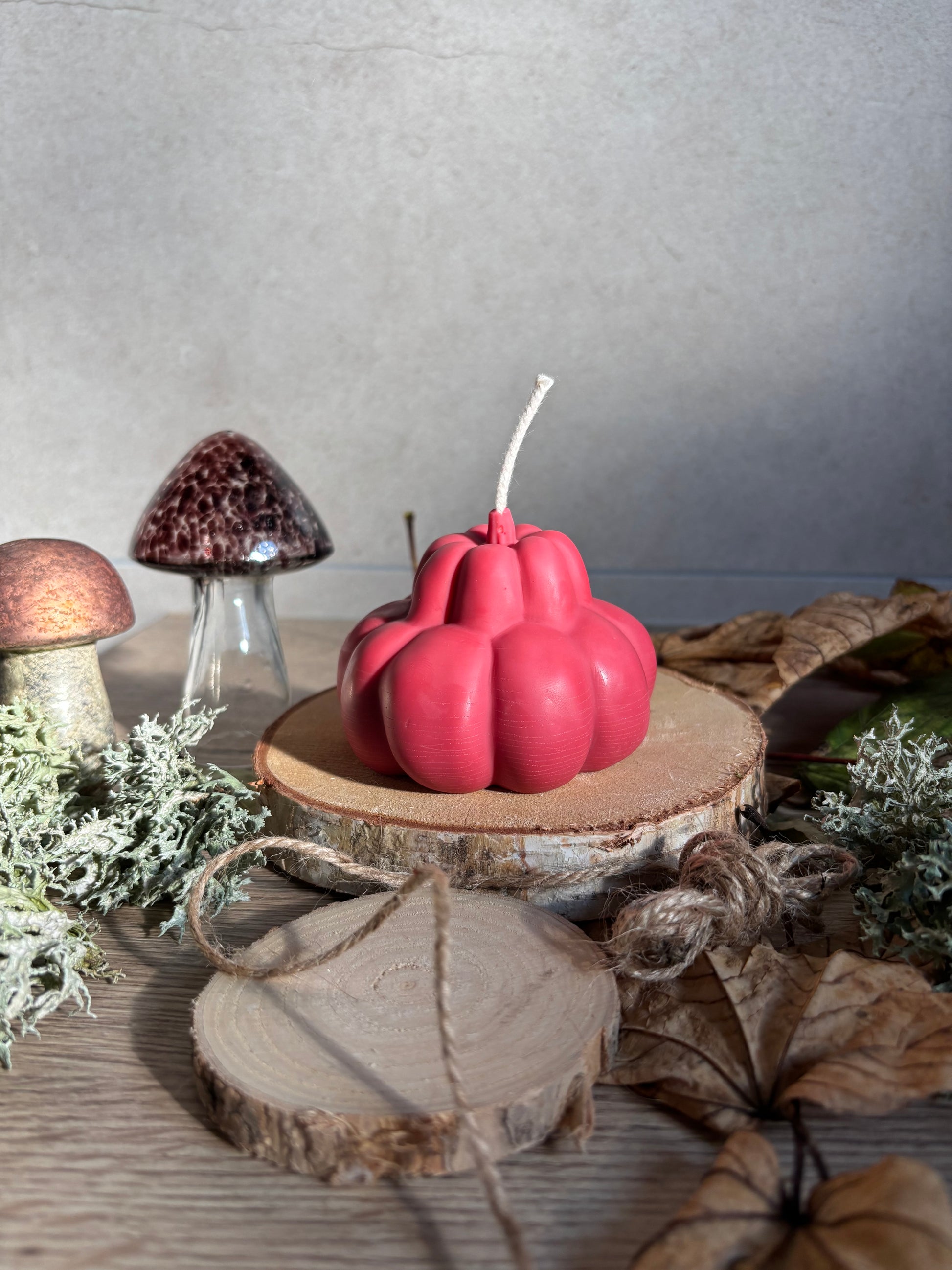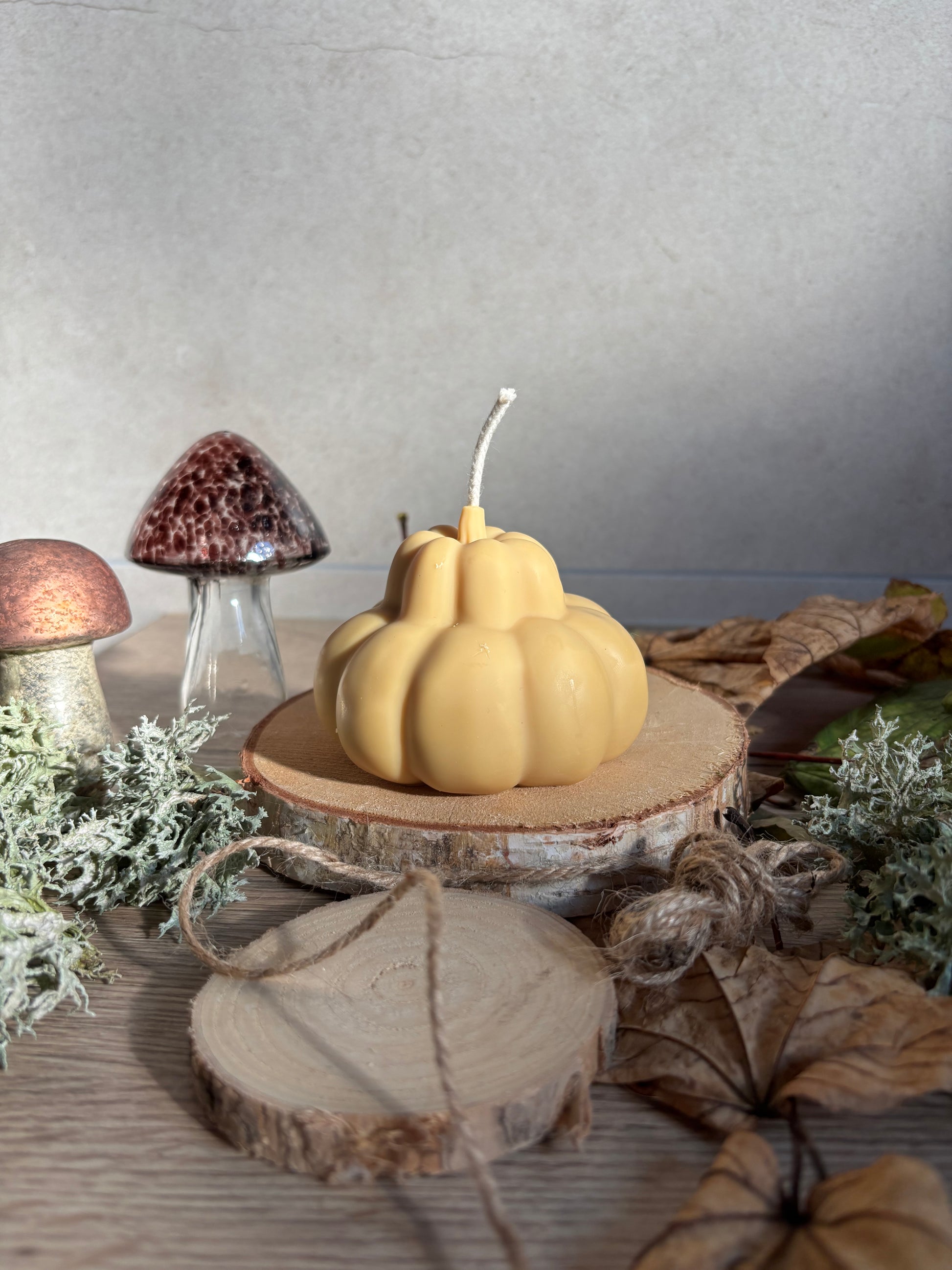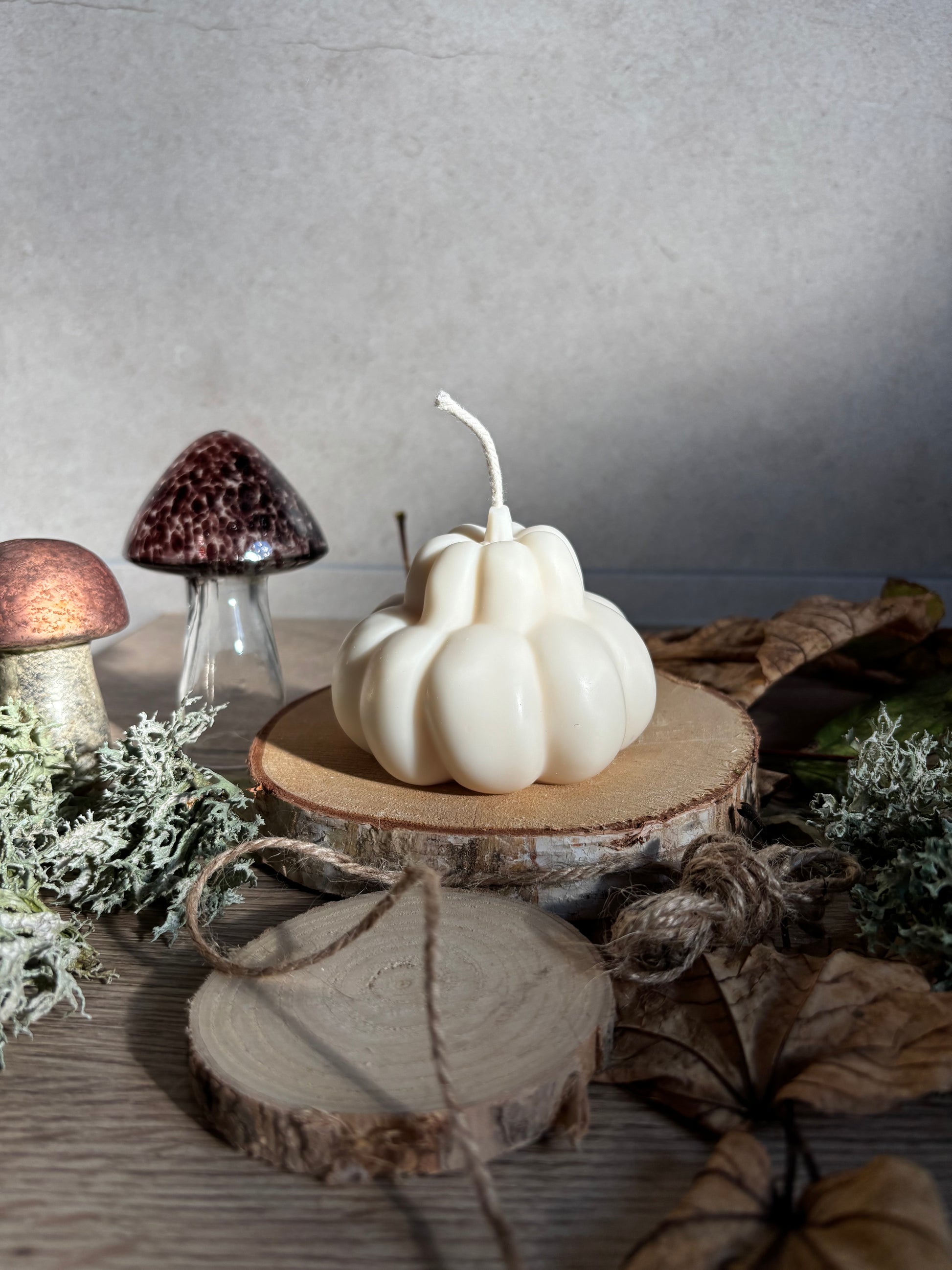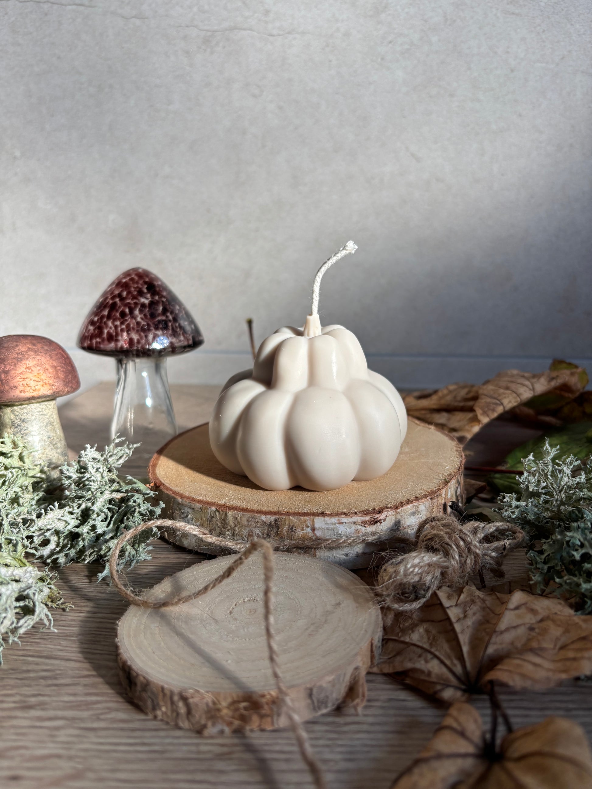 La bougie "courge double" est composée de cire de colza 100% végétale (provenance EU) et d'une mèche en coton.
